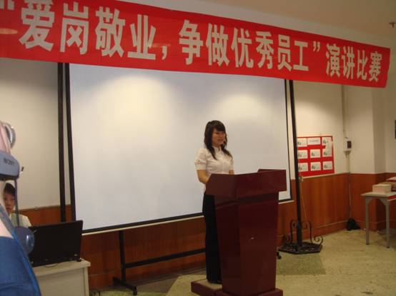 2013年8月10日,公司工會舉辦“愛崗敬業(yè)”演講比賽。公司財務(wù)審計部、行政部、商業(yè)經(jīng)營部、建設(shè)部、人力資源部等部門選送了10名員工參加演講比賽。這次比賽主要是為了增強(qiáng)員工愛企業(yè)的凝聚力和向心力。